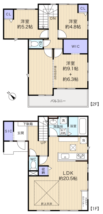 1階フロアは、約22.4帖LDKと水まわりの広々空間◎ 2階...