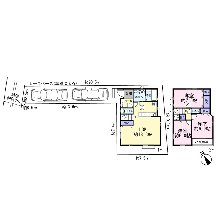 ■土地面積:108.68㎡(路地状部分約37%含む) |