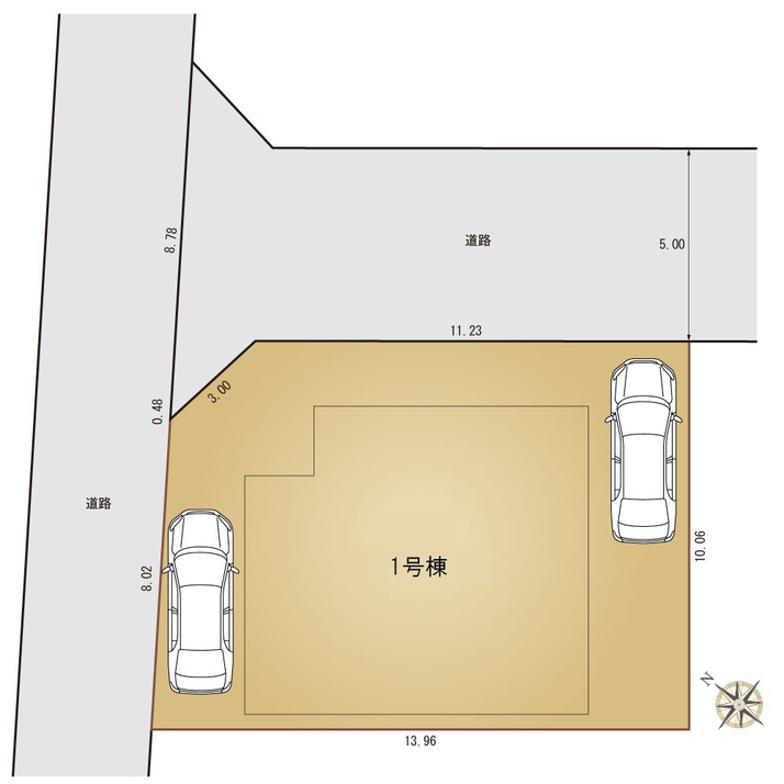 | 接道詳細 | 北東5m私道に11.23m接道 北西7.7m公道に8m接道 | ||