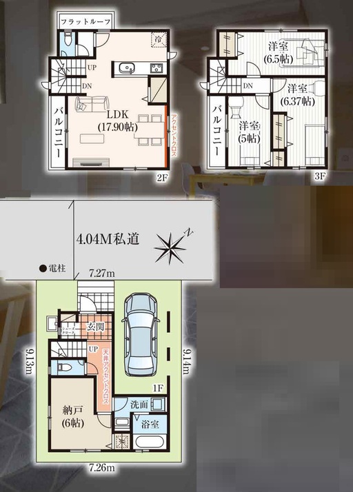 | 接道詳細 | 北西4.04m私道に7.27m接道 | ||