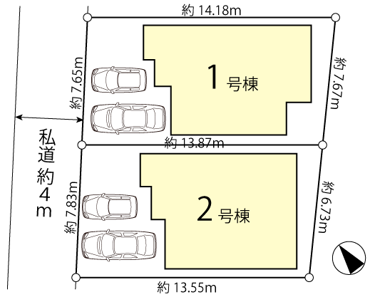 | 接道詳細 | 北西4m私道に7.65m接道 | ||