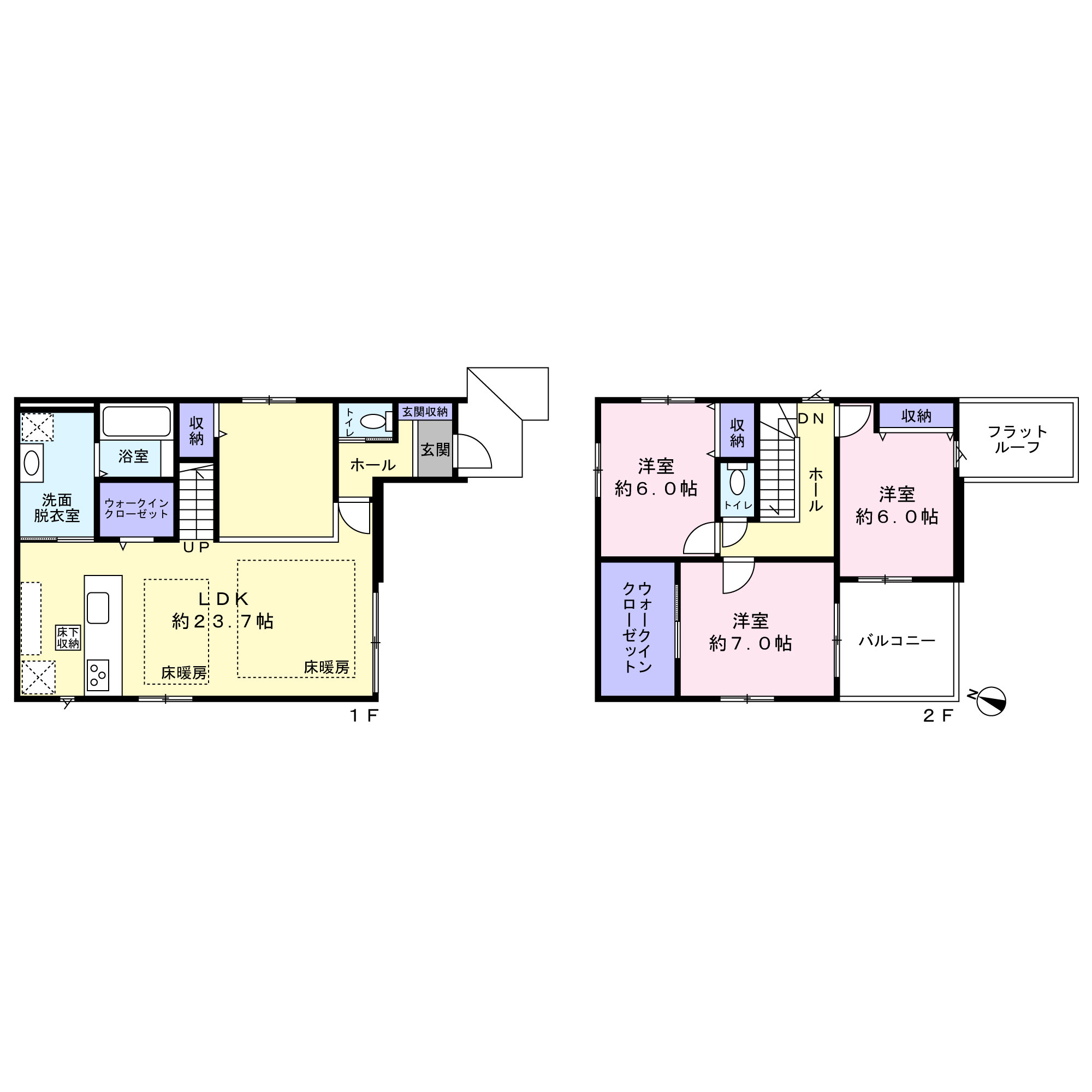 ご家族でのびのび暮らせる3LDK 南西側道路に面しており陽当たり良好◎ 使い勝手の良い全室洋室タイプ 家族の集まるLDKは23帖越え(間仕切り対応可)ゆとりの空間には床暖房付きで冬でもあたたか♪ キッチンの隣に洗面室・浴室があり、水廻りのお手入れも効率◎ 各居室収納スペース付きで収納豊富な間取り 日々の生活をサポートする充実の設備 カースペース2台分 前面道路幅員6mあり駐車も楽々♪ 2路線利用可能で通勤通学に便利 フラット35S利用可