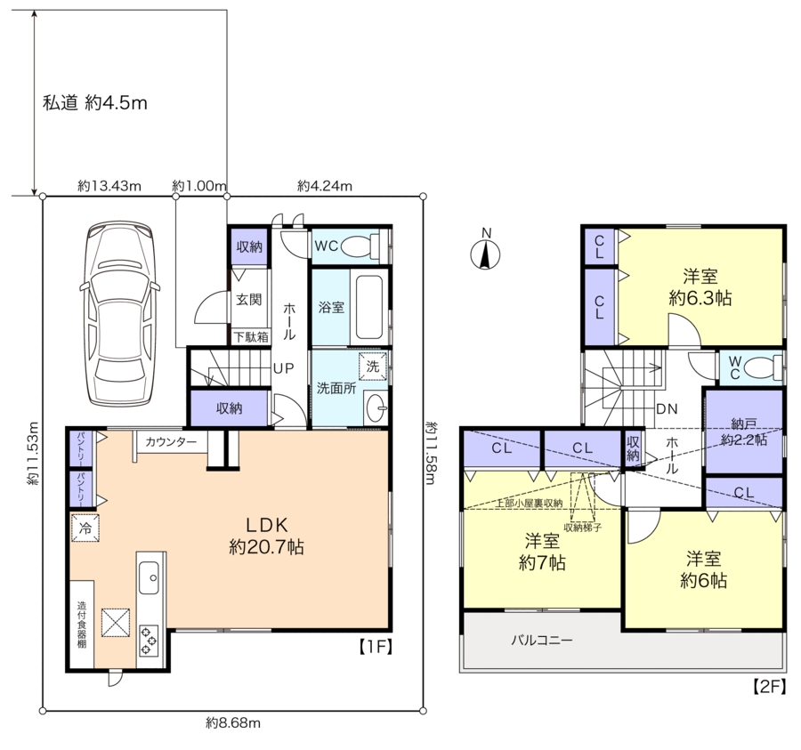 | 接道詳細 | 北4.5m私道(位置指定あり)に4.43m接道 | ||