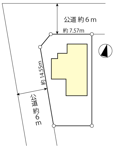 | 接道詳細 | 北西6m公道に7.5m接道 南西6m公道に14.5m接道 | ||