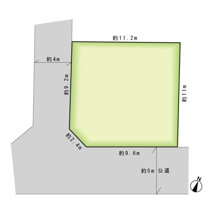| 接道詳細 | 南5m公道に9.6m接道 西4m私道に9.2m接道 | ||