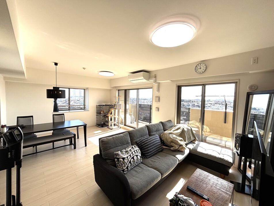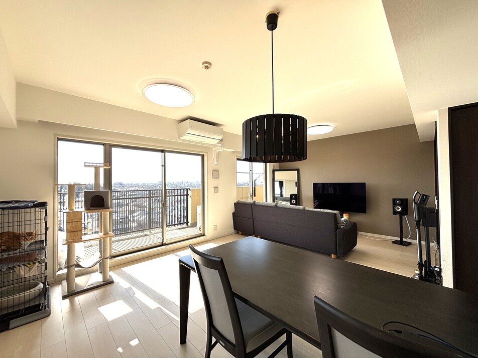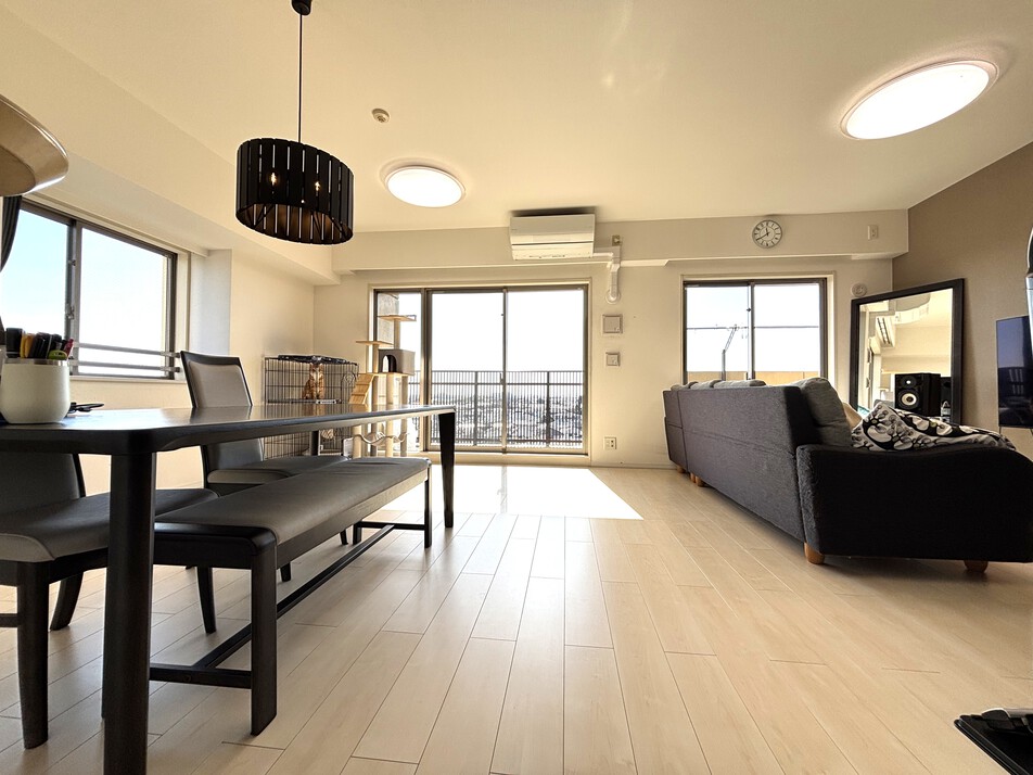 大切なペットと暮らせるマンション 2019年11月リフォーム履歴あり(各種水栓交換、コンロ、建具一部、フローリング上張り、クロス、CF等) 前面棟なし、9階南東角部屋 陽当たり風通りともに良好 使い勝手の良い全室洋室タイプの3LDKです 専有面積約90.48㎡ 太陽の恵みを感じるLDKは広々約21帖 出窓付きの開放的な空間が広がります 居室もすべて6帖以上の広さがあり、ご家族でゆったりとお過ごしいただけます WICをはじめ、全室に収納設備付き リネン庫やリビング収納もあります 室内丁寧にお使いです