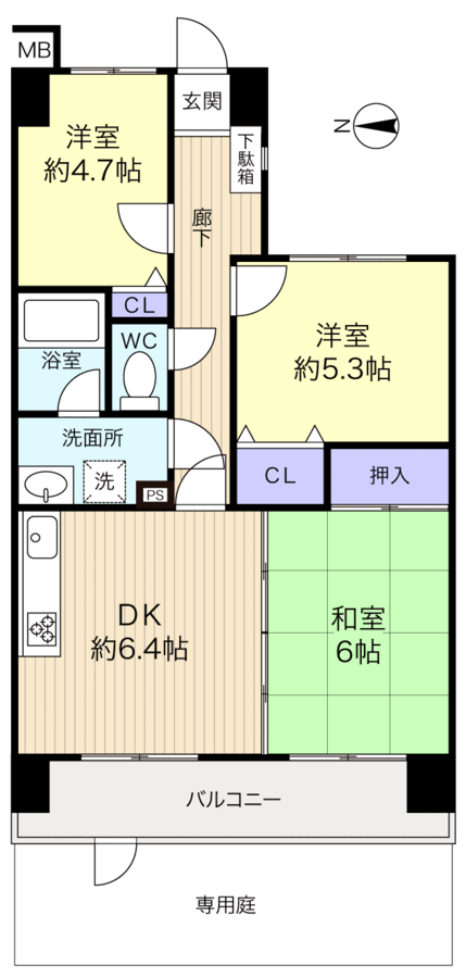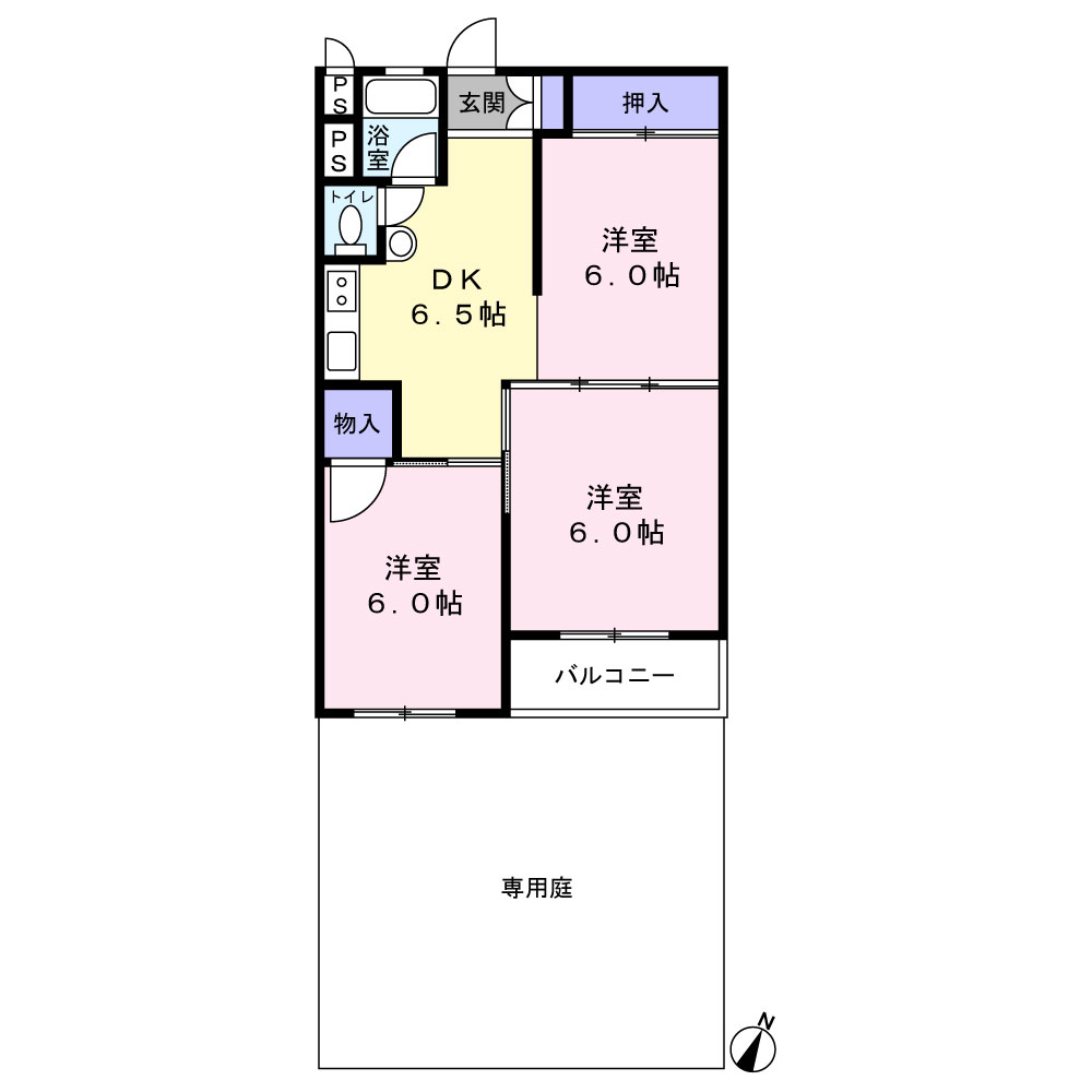 RC造5階建1階部分の住戸 専有面積約44.7㎡の3DK 戸建て感覚の専用庭付き 全室洋室タイプ 南向きにつき日当り良好 令和7年1月リフォーム実施 リフォーム実施内容(新規交換:システムキッチン・システムバス・洗面台・モニター付きインターホン/クロス・フロアタイル張替 他) 京成本線「谷津駅」徒歩...