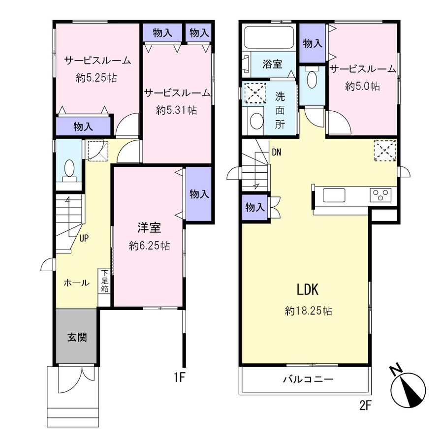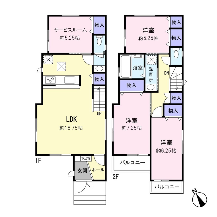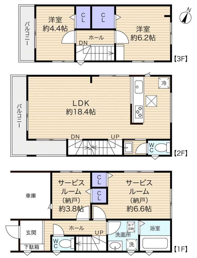 新築分譲住宅全2棟の2号棟 家族でゆったり暮らせる3階建て2SLDK 全部屋2面採光で明るく風通り良好 各居室収納設備付き WICもあるので荷物をスッキリと収納できます 1階サービスルーム2部屋は居室としての使用が可能◎ 2階LDKはゆったり約18.4帖 対面式キッチン・リビング階段を設けた、家族の...