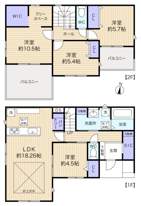 「ワンランク上の分譲住宅」をコンセプトに設計された全2棟の分譲地 駐車スペース2台分 リビングには空間をお洒落に彩る折上げ天井を採用 家族とのコミュニケーションが深まるリビングイン階段 季節ごとの衣替えが不要で小物までまとめて収納可能なWIC付き 全居室にたっぷりの収納を備えています SICはベビー...