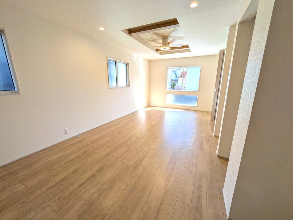主要採光面南の明るく心地よい住まい 居室はすべて2面窓で風通りも良好◎ 約17.5帖のLDKは折上げ天井を採用した開放感ある空間です 洗面室はキッチンからも出入りがしやすく、家事動線に配慮 全居室に収納付き WICが2ヵ所に設置されており、洋服や荷物をスッキリと収納できます 駐車スペースあり 2路線...