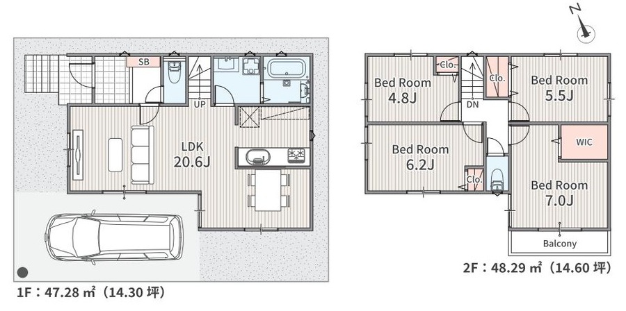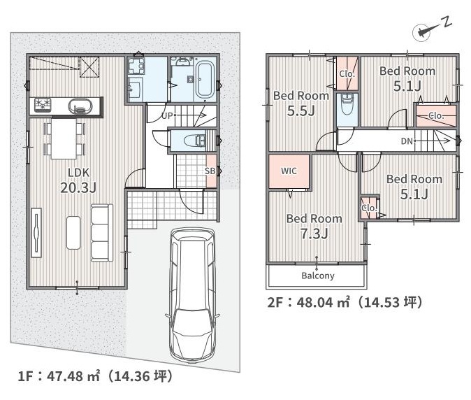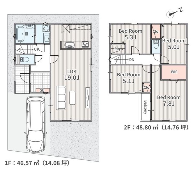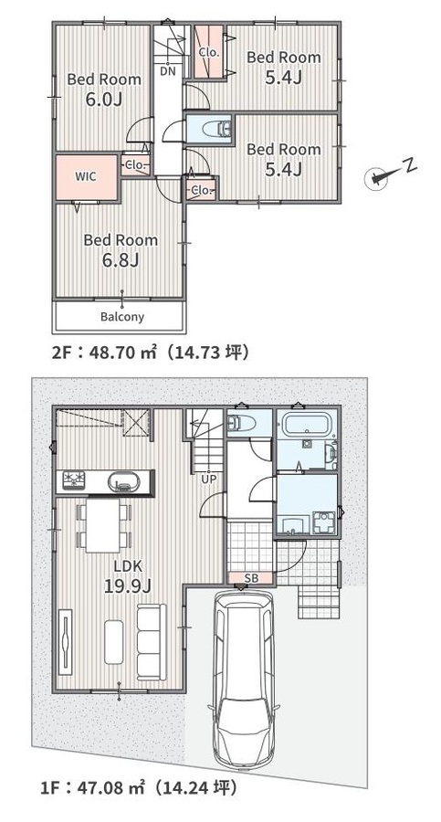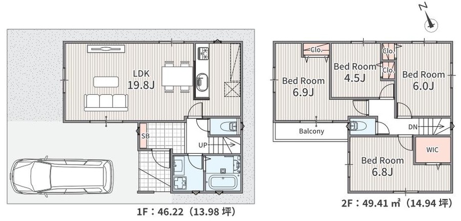 全2棟の新築分譲住宅 敷地面積約111.23㎡・建物面積95.43㎡の4LDK 駐車スペース1台分 インテリアの映える全室洋室 全居室2面採光につき部屋が明るく開放的な空間 対面式キッチン・リビング階段を設けた、家族の交流が増える間取りプラン 各居室収納設備付き WICもあるので荷物をスッキリと収納...