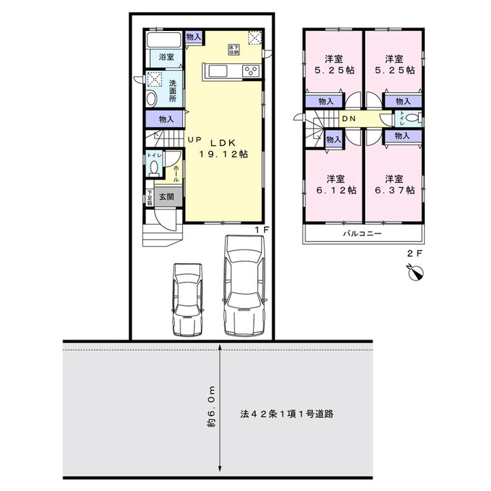 新築分譲住宅全2棟のA号棟 主要採光面南西の明るく陽当たりの良い住まい 家族でゆったり暮らせる4LDK 対面式キッチンやリビング階段を設置 家族のコミュニケーションを大事にした間取プランです 全室収納設備付き 2面採光で風通り良好です 駐車スペース2台分(車種による) 前面道路幅約6mで駐車も容易で...