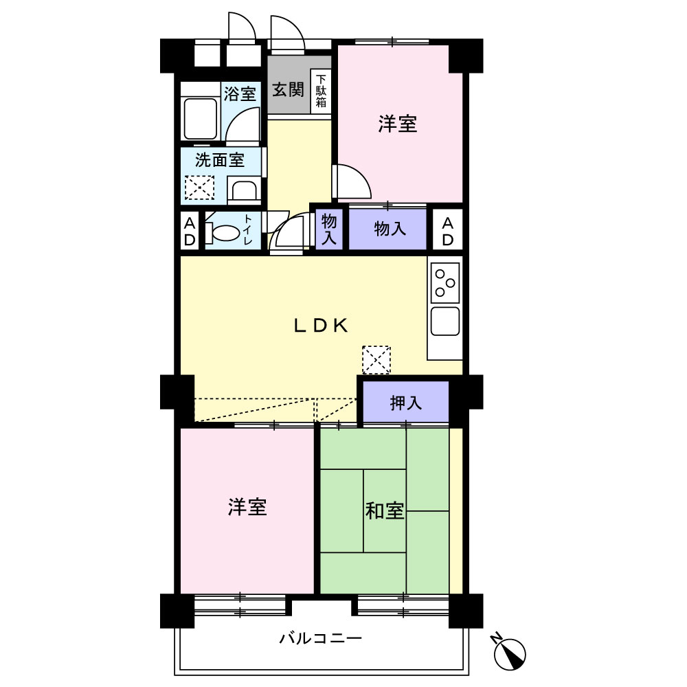 RC造7階建て3階部分の角住戸 北・西・東の3方に開口部のある風通しの良い住戸です 専有面積約67.68㎡の2LDK 全居室6帖以上 JR「津田沼」駅徒歩3分 複数路線利用可能で通勤・通学に便利 2025年9月内装リフォーム実施 工事内容(新規交換:キッチン・浴室・洗面台・給湯器・トイレ・建具・洗濯...