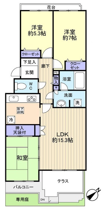 1階住戸・専用庭付き! リノベーション履歴あり:2022年5月末(水まわり一式新規交換、壁・床など) 間取りは3DKですが、DK隣接の和室扉を外して延長リビングとしての利用も♪ 主寝室にはWIC・各所収納充実です 新京成線「前原」駅徒歩10分・JR総武線「津田沼」駅へもバスアクセス可能 全121戸の...