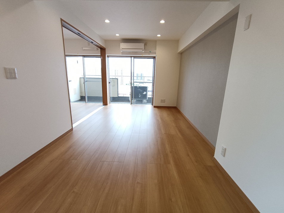 南東角部屋の9階部分につき陽当り・眺望・通風良好 広々16.1帖のLDKにリノベーションされた2LDK 新品の水まわりで新生活を始められます(2025年9月:キッチン・浴室・トイレ・洗面交換、全室クロス張替え、床張り替え、給湯器交換、建具交換) 食洗機・追い焚き・浴室乾燥機など暮らしを彩る設備が充実...