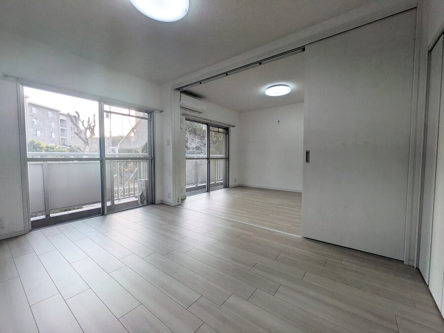 RC5階建 総戸数90戸 南東側に面した陽当たり良好な3LDK 家族みんなが集まるLDKは約14.5帖 ほっと落ち着く和室6帖が2間ございます♪ 令和7年10月内装リフォーム実施済(クロス・クッションフロア新規貼替/畳表替え/襖張替/和室スイッチ交換/モニターホン設置/洗面鏡新設/照明一部新規交換/...
