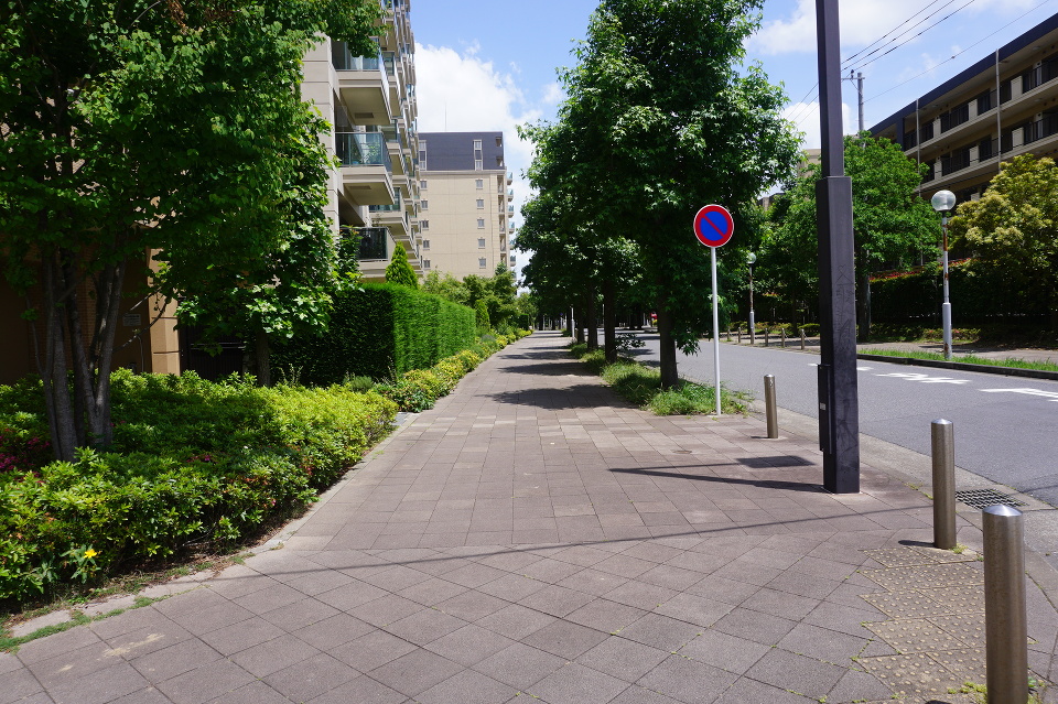 樹々の緑豊かな美しい街並み歩道も広々とした整った前面道路