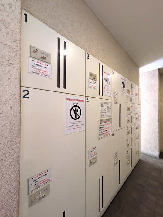 宅配ロッカー。不在時に便利な設備が備わっています。