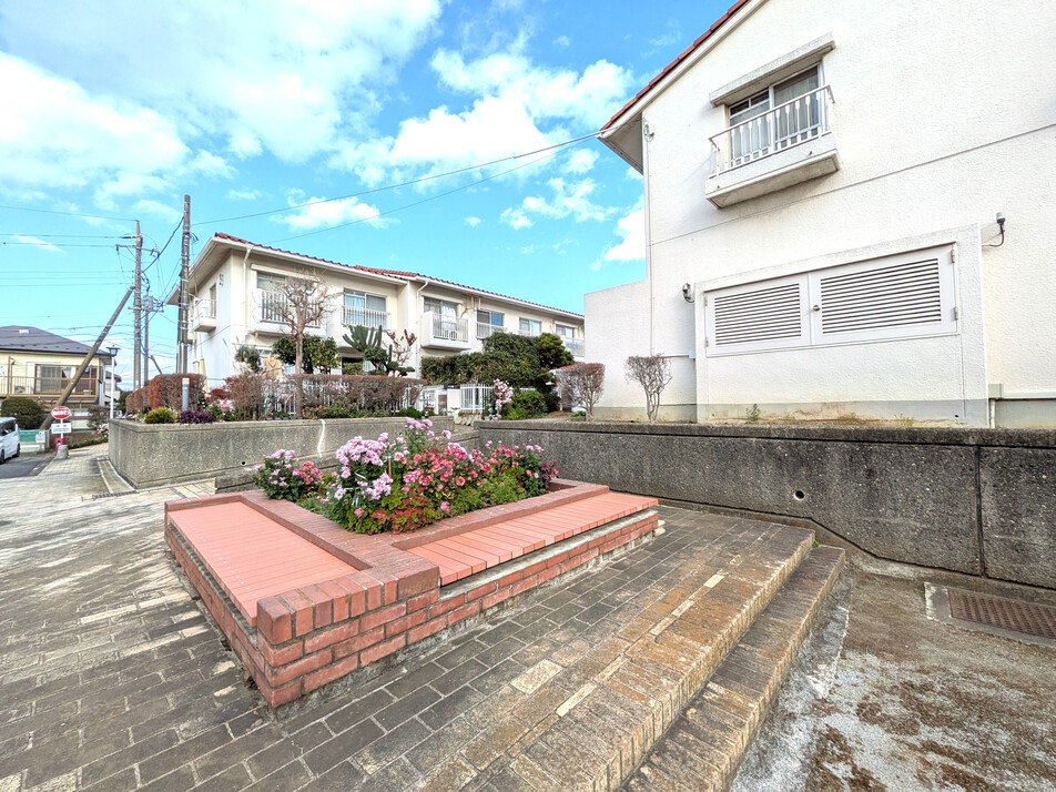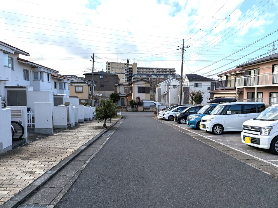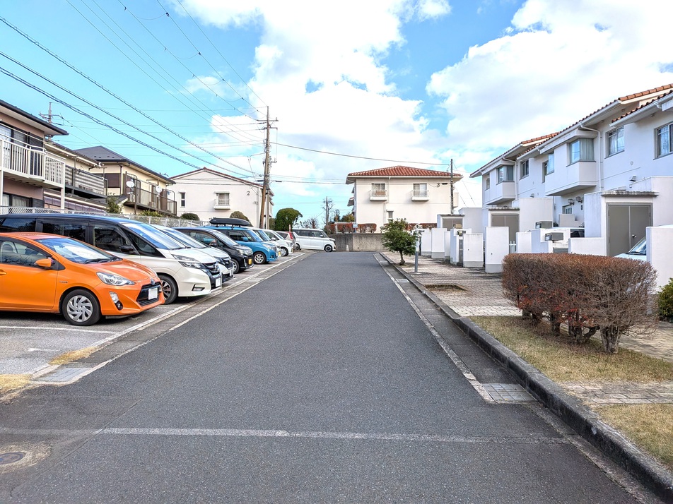 駐車場のある敷地内の景観